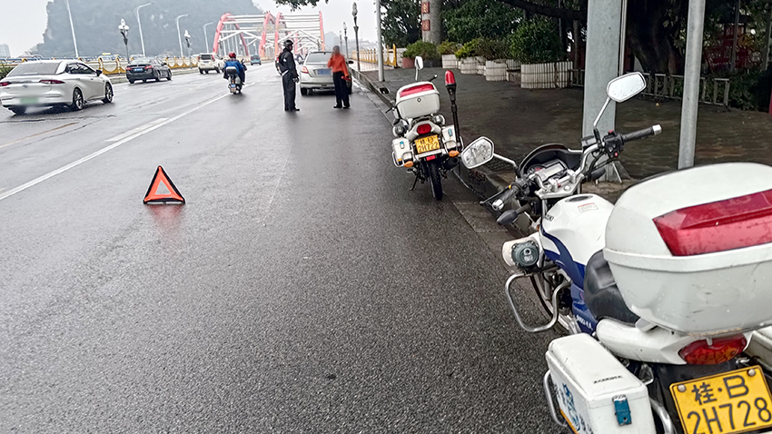 当天上午9点左右,城中区城管执法局执法队员送执法摩托车外出保养,途经文惠桥北端桥头时,看到一辆银白色小轿车开着双闪灯,停在道路中间,一名女司机站在一旁发愁,城管队员便靠边停车,上前查看情况。询问中,得知女司机在驾车经过此处时,方向盘突然失灵,发动机自动熄火,导致车辆无法继续行驶。她想打电话求援,结果却发现常用手机忘带了,另一部备用手机则是欠费停机,一时间无计可施,只能站在一旁发愁,连故障警示牌也忘了摆放。