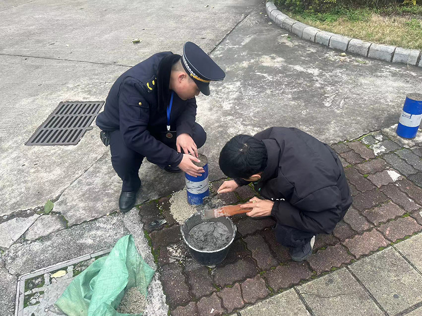 随后,在执法人员准备前去维修隔离桩时,谢先生主动跟随前往。在现场和执法人员一起捞泥拌浆,将被撞歪的隔离桩重新扶正加固,恢复原貌。