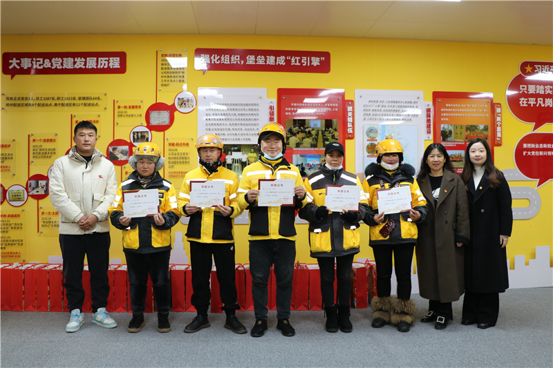 参加领导为首批选树的5名“最美青年骑手”颁发荣誉证书