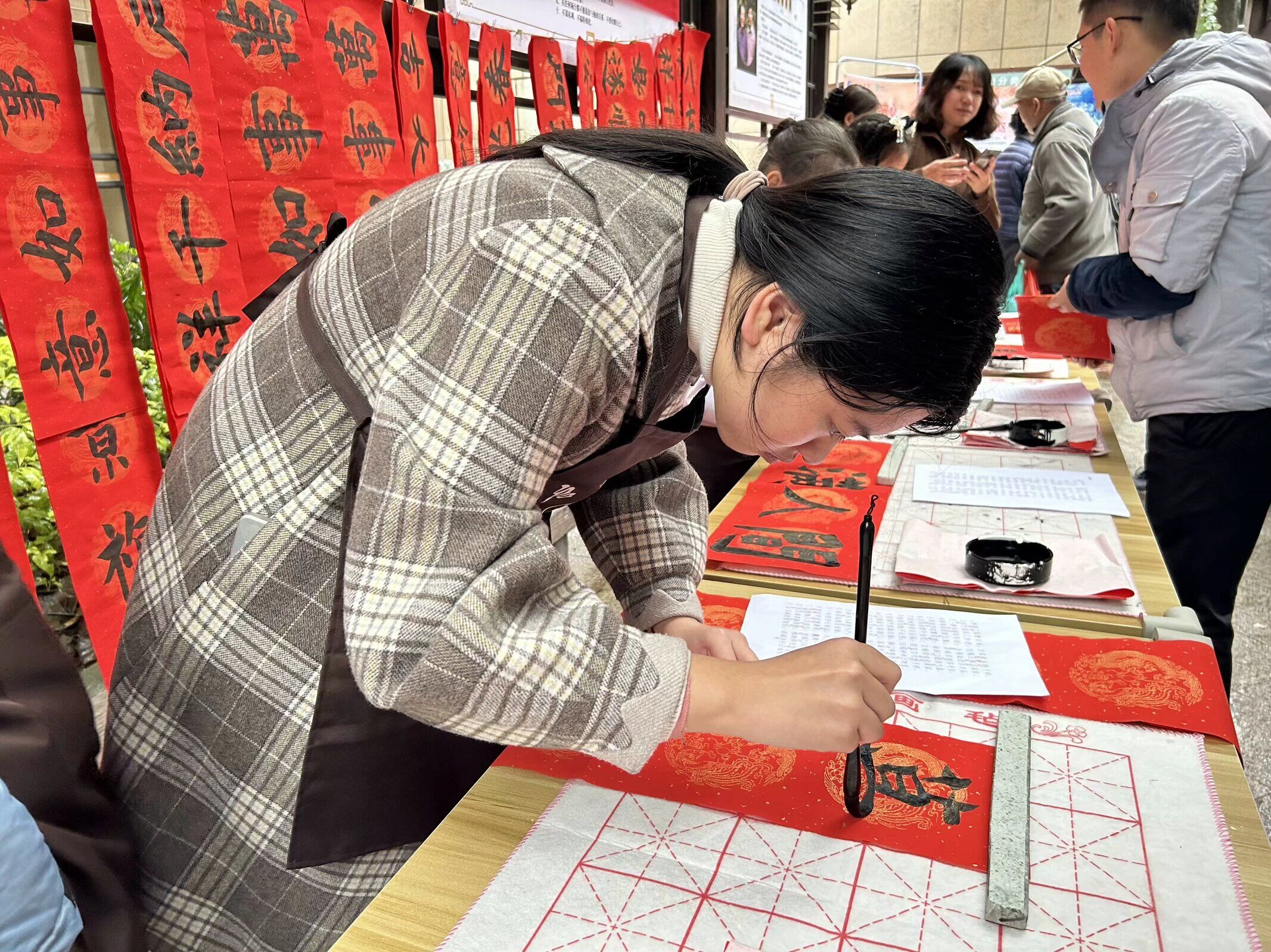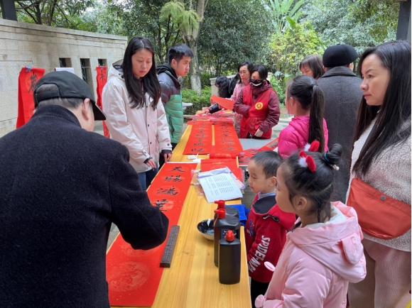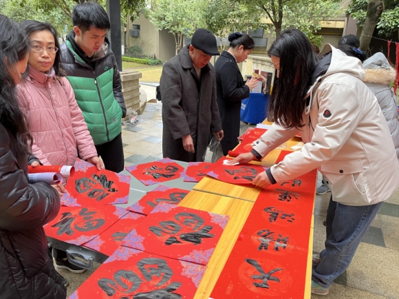 现场群众驻足围观、精心挑选自己喜爱的春联和“福”字,纷纷称赞感谢。更有按捺不住的小朋友和职工上阵,书写着各自的新春祝愿,现场其乐融融,浓浓的年味扑面而来。