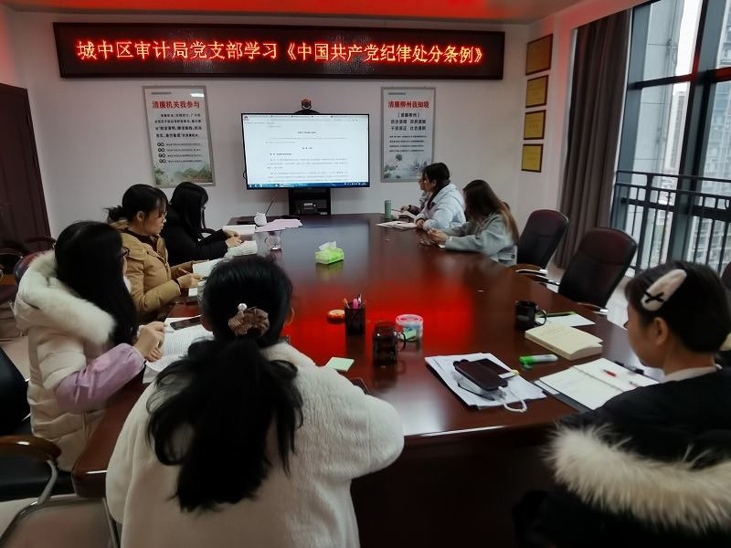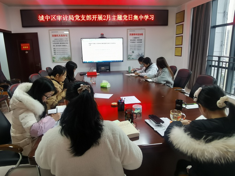 图1为城中区审计局党支部党员干部开展主题党日集中学习