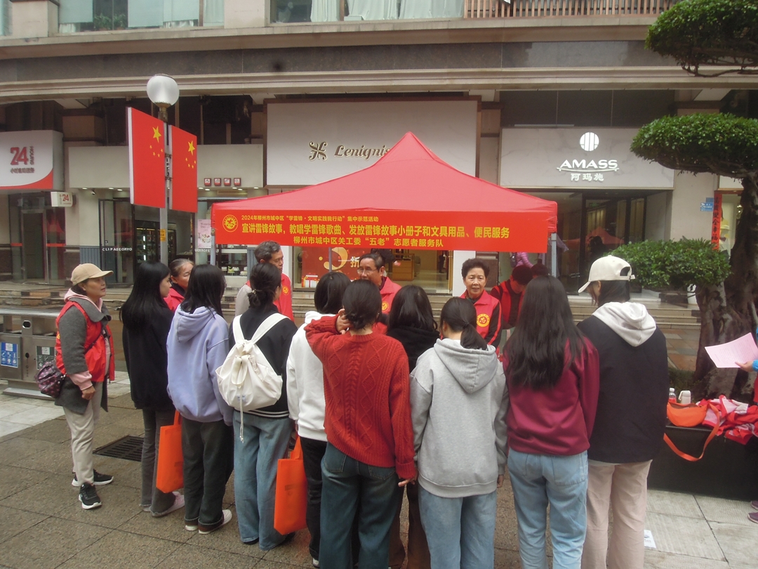 (区关工委办讯 通讯员程中)3月5日,城中区关工委在五星步行街,参加城中区学雷锋志愿服务月集中示范展示活动,五老志愿者通过宣讲雷锋故事、唱响学雷锋歌曲、抢答雷锋先进事迹等形式,在社会上弘扬雷锋精神,传递社会正能量,营造团结友爱、文明礼貌、勤俭节约、无私奉献新风尚。