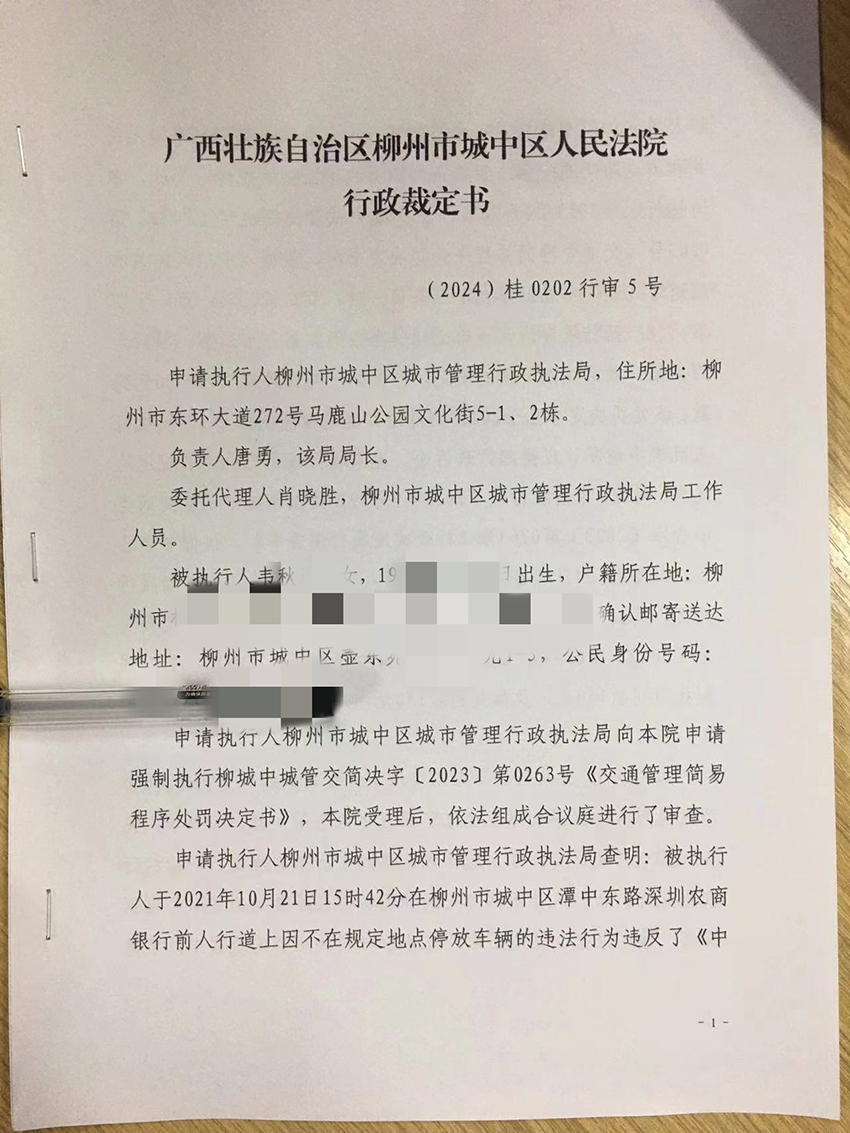1月17日,城中区人民法院作出准予强制执行的行政裁定,并向韦某送达行政裁定书。收到法院的行政裁定书后,意识到事情严重的韦某急忙赶到银行缴纳了1650元罚款。以为已经履行完处罚的韦某打电话给执法部门时才得知还要被加处罚款1650元,这也让她悔不当初。