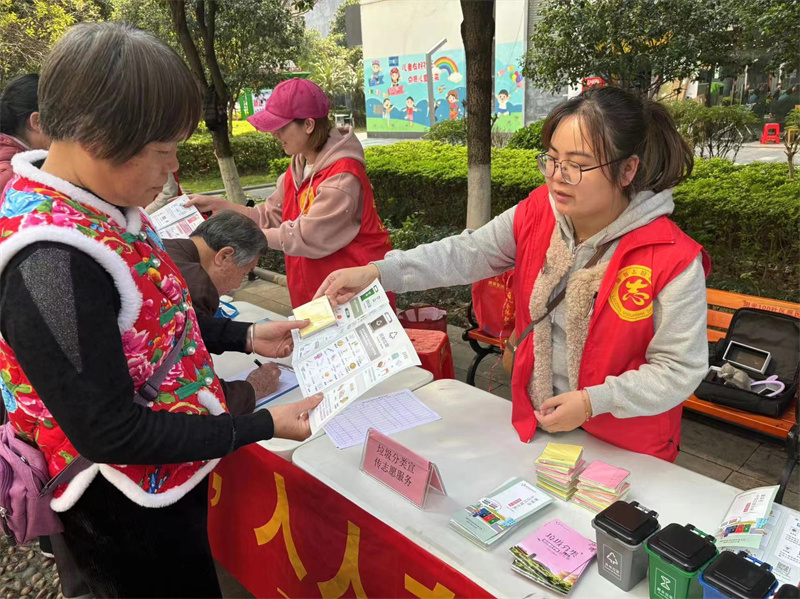 弘扬雷锋精神,践行志愿服务。城中区环卫所党支部联合阳光100社区开展学雷锋活动,志愿者们积极向阳光100小区居民宣传垃圾分类、创城等知识,通过分发宣传单和宣传手册向群众耐心的讲解垃圾分类知识,让群众理解垃圾分类工作的重要性,引导群众养成良好的垃圾分类习惯,提高群众对垃圾分类的自觉性,形成齐心协力推进垃圾分类的良好局面,进一步助力全国文明城市创建,提升市民文明素质,营造垃圾分类新风尚。