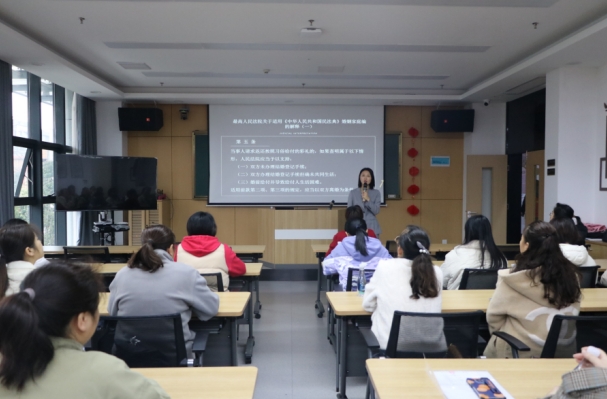 本次宣讲由广西同望(柳州)律师事务所合伙人,青年委副主任姜嶷律师主讲,以《民法典》婚姻家庭篇继承篇热点问题解析为主题,从女性在工作中的权益、女性在婚姻中的权益、女性在继承中的权益、女性在社会中的权益等几个方面,运用通俗易懂的语言、生动的案例为大家讲解女职工的特殊利益、合法权益等,教女性朋友拥有更多的知识和技能,更加自信地站起来维护自己的权益;更加自由地展现自己的能力和才华;更加注重女性在社会中的地位。同时对保护家庭关系、维护家庭稳定也起到重要的缓冲作用。姜律师还强调了优良家风、家庭美德和家庭文明建设的重要性,教育引导广大女职工学法、守法、用法,学会用法律武器维护自身合法权益。