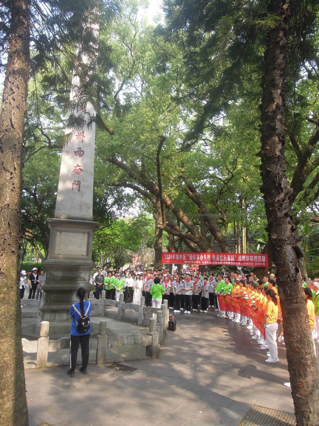 最后全体人员瞻仰柳州市解放纪念碑、向革命烈士默哀和敬献鲜花。