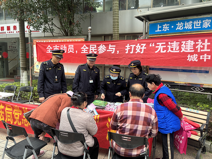 (城中区执法局讯 通讯员邓湖广报道)3月21日,城中区城管执法局在桂中大道龙城世家小区开展违建知识普法宣传活动,附近居民纷纷前来了解相关法律知识。