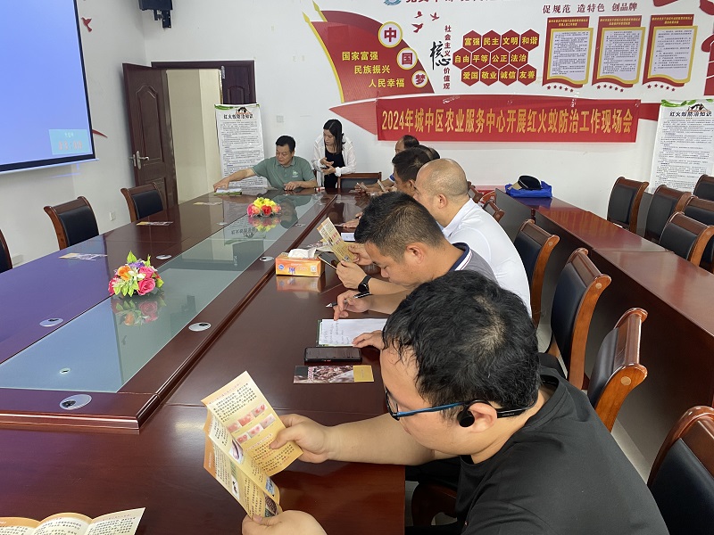 (城中区农业农村局讯 通讯员李静玫报道)为做好红火蚁防控工作,4月17日,城中区农业服务中心召开了2024年红火蚁防治工作现场会,现场向村民发放红火蚁防治药物300余包,进一步保障农村生活,助力我区粮食生产。