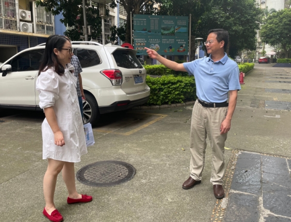 张世源在鹿山社区办公场所与社区负责人进行座谈交流,详细了解社区创城工作推进情况,随后实地走访了鹿山社区部分居民小区,重点检查环境卫生、垃圾清理、车辆停放等方面的情况,并就发现的问题提出整改意见。