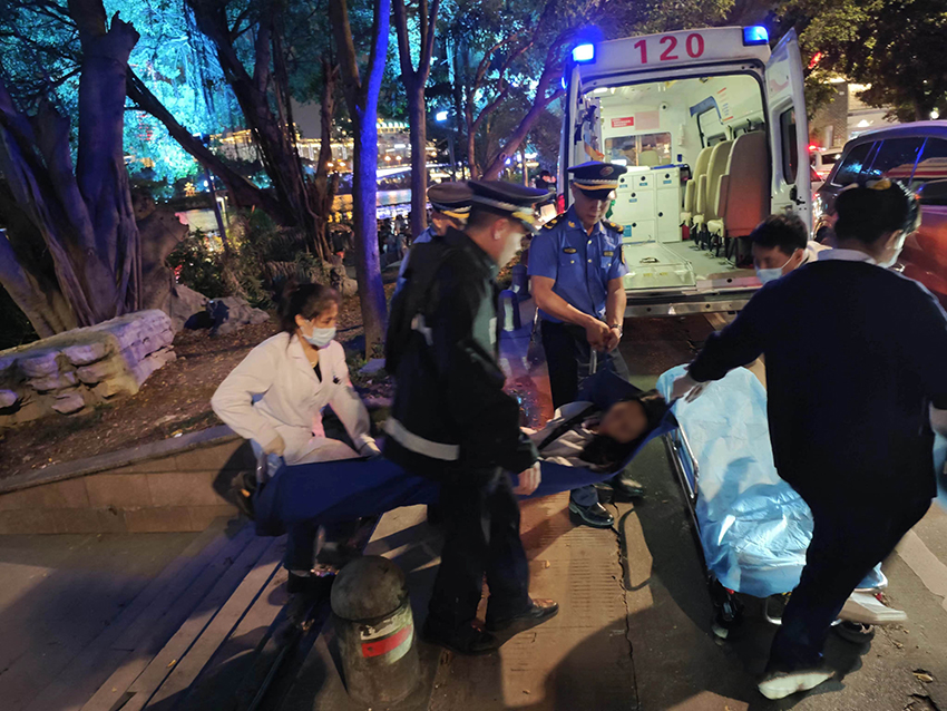 当天晚8时许,有市民找到正在滨江东路亲水步道执勤的城管队员求助,称有人晕倒,城管队员立即跟着市民赶到现场。只见一名女子面色苍白地躺在地上,旁边一名小女孩正在号啕大哭。市民说几分钟前,该女子突然仰天倒地,后脑着地昏迷,有热心市民帮按人中穴位刺激后才苏醒,但却手脚发软无法站起。