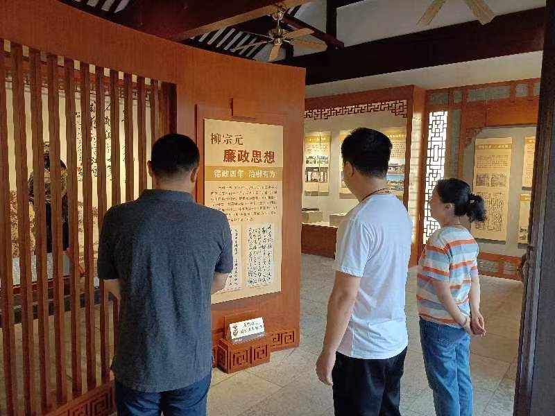 在讲解员的带领下,一行人依次参观了柳宗元名言警句长廊、柳宗元生平事迹厅及“柳州惠政”,经过讲解及现场参观,大家详细了解柳宗元生平事迹,他是我国唐代杰出的思想家、文学家,政治家,不仅是柳州的“老市长”,更是千年的廉政标杆,他在《雷塘祷雨文》中为世人留下了“廉洁自持,忠信是仗”的警世名言,他以百姓为本,一切以百姓为出发点,其朴素的民本思想,廉洁自律的为官之道以及治国理政的先进理念,在柳州任刺史四年里,重修文庙、解放奴婢、开荒挖井、种柑栽柳,发展生产,为柳州人民世代传颂,其“吏为民役”“蠲浊流清,废贪立廉”的政治主张深刻体现了柳宗元为国为民、廉洁自持的高尚品质。