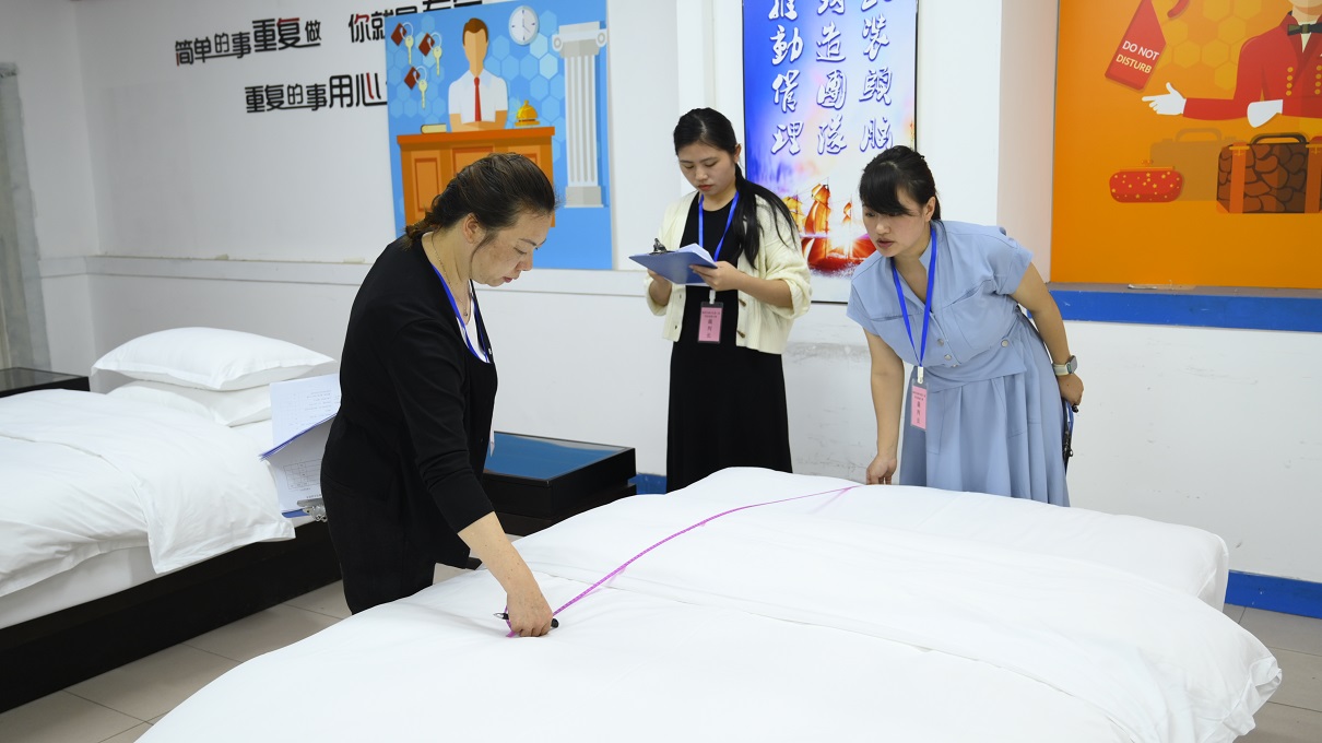 大赛设置了客房服务、传统螺蛳粉制作、茶艺、母婴护理、养老护理、网络安全共六大竞赛项目。除网络安全为双人赛外,其余各项目均为单人赛。值得一提的是,柳州旅游“火出圈”,住宿体验成为重要的“留量”密码之一,本次大赛特别新增客房服务竞赛项目,组织辖区内的柳州院子君亭酒店、柳州饭店、鹏逸酒店等酒店参赛,参赛选手娴熟的岗位技能操作给大家留下深刻印象。