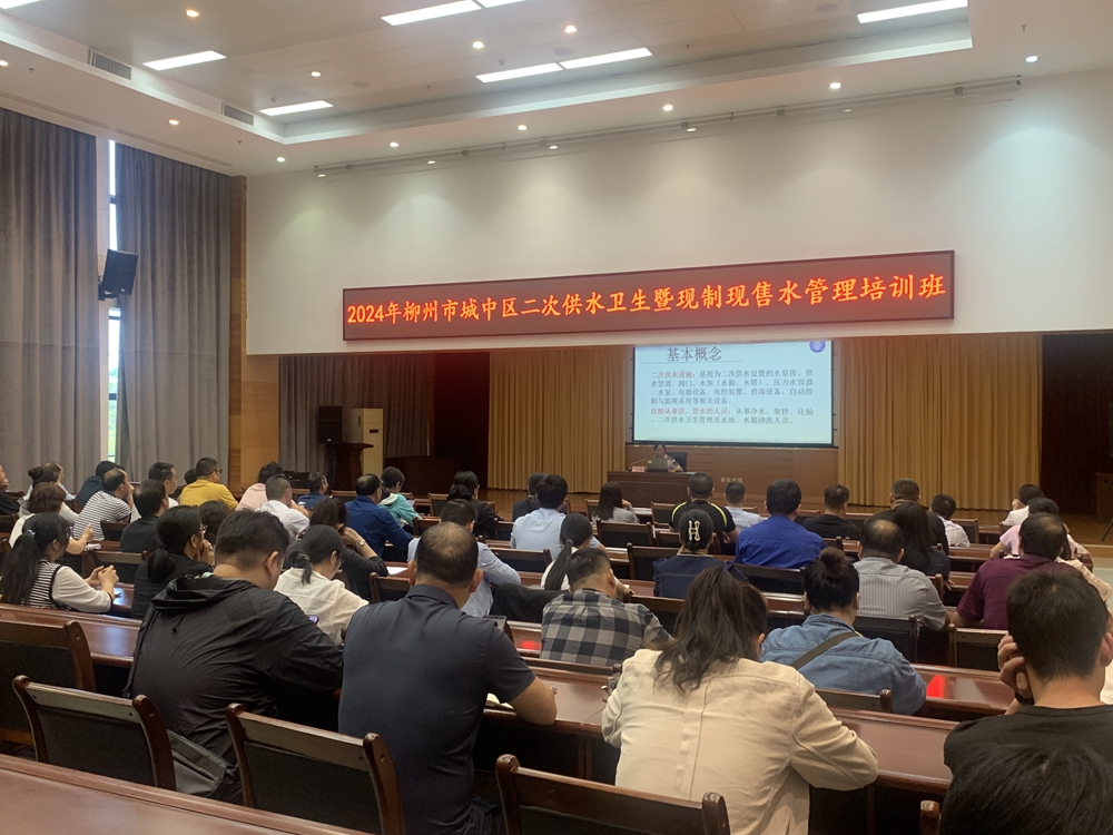 为加强卫生监督员、二次供水单位卫生管理人员及医疗美容机构相关管理人员队伍建设,提升卫生监督员监督执法效能及相关行业从业人员业务素质和服务水平,扎实推进全区卫生监督工作有效开展。4月26日上午,城中区卫生计生监督所在河东管理大厦召开城中区2024年二次供水卫生暨现制现售水管理培训会以及医疗美容机构依法执业培训会。培训由城中区卫生监督所副所长温华、贾双玲主持,邀请柳州市卫生监督所专业技术人员邓玉娟副科长、赵栩副科长授课,区卫监所监督人员、辖区二次供水单位卫生管理人员(包含学校二次供水及饮水机卫生管理人员)、现制现售饮用水经营单位负责人;辖区医疗美容机构负责人、医政管理人员辖区医疗美容机构负责人、医政管理人员等共120余人参加培训。