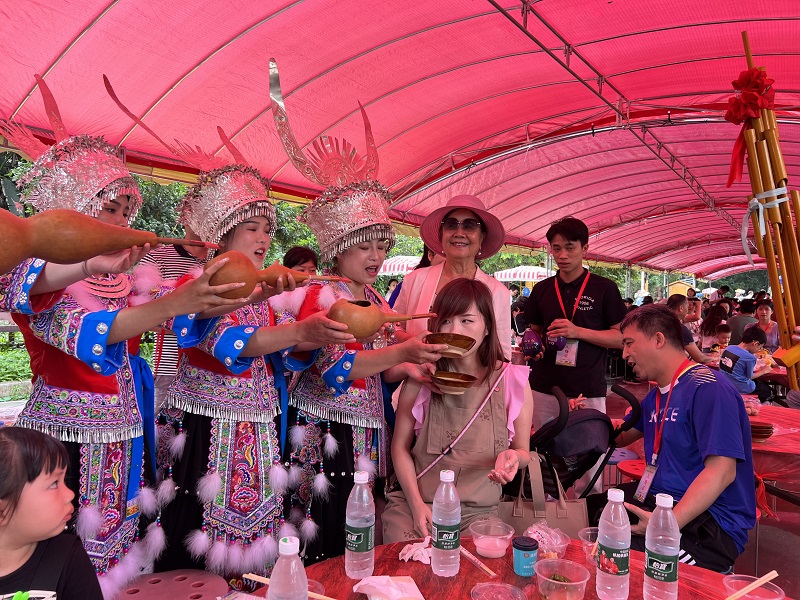 观光结束后,游客们还可以品尝长桌辣椒宴。村民们用自己种植的辣椒制作了油爆辣椒、辣椒酿、擂椒拌皮蛋等各种美食,热情款待各地的游客,进一步传播环江村的辣椒文化,提高人们对辣椒营养价值和健康理念的认识。很多游客一边品尝辣椒美食,一边畅饮美酒,直呼十分过瘾。