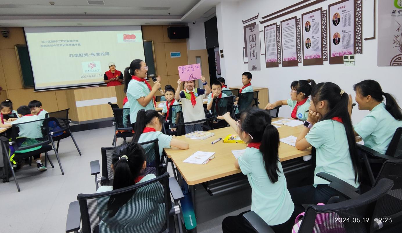 自古以来,“龙”是中华民族精神的象征,在传统神话中,龙可以遨游九州、呼风唤雨。“广西壮族板凳龙舞”是广西壮族非物质文化遗产的一部分,它是集舞蹈、体育、彩调音乐为一体的民间传统舞蹈,具有很高的观赏价值,2016年该项目已列入柳州市城中区第二批非物质文化遗产代表性项目名录。5月19日上午,城中区文化馆在二楼多功能培训室面向柳州市文韬小学四年级的40多名学生组织开展“柳州人文-广西壮族板凳龙舞”主题研学活动。