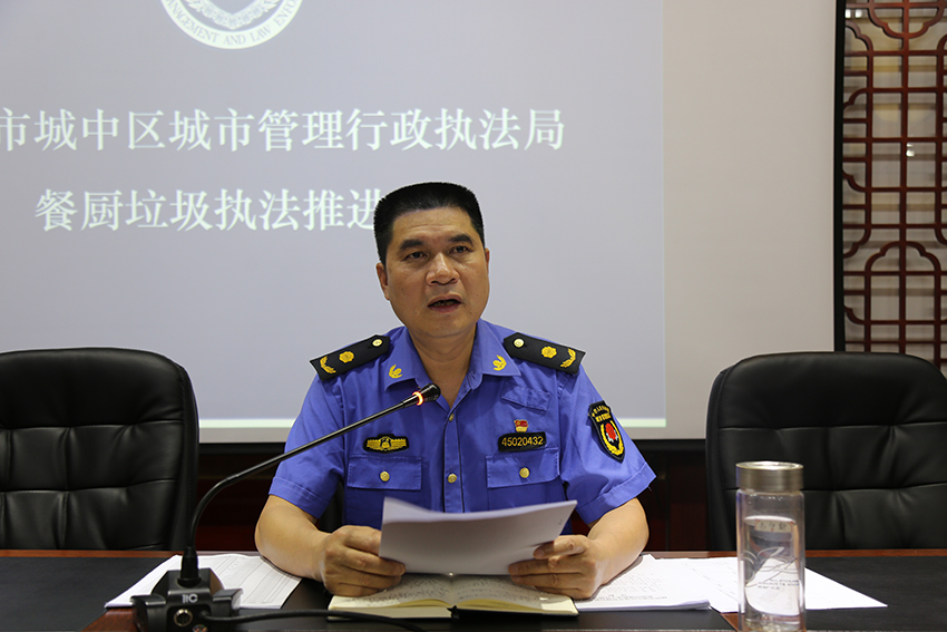 会上,城中区城管执法局副局长韦守斯全面分析了餐厨垃圾的去向,以及餐厨油污进入下水道的危害,介绍了餐厨垃圾收运工作的开展情况和柳州市对餐厨垃圾的管理规定。