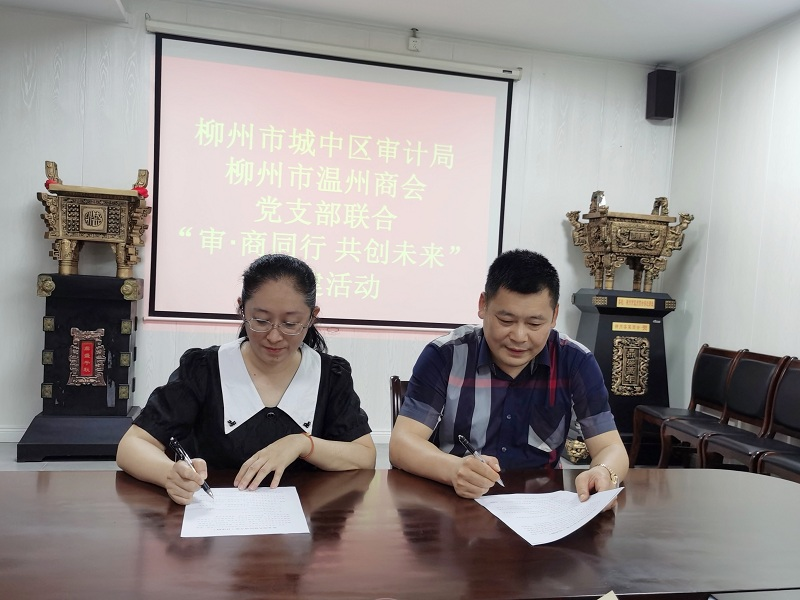 会上,温州商会党支部介绍了商会发展历程、文化精神、组织架构以及党建工作开展情况,审计局党支部介绍了审计职责特点、党组织建设等,双方围绕结对共建活动、共建机制及党建工作达成共识,并现场签订共建协议书。双方均表示,要以党建共建作为加强学习交流的重要抓手,深化党建共建机制,全面提升党建引领力、业务融合力、发展推动力。会后,城中区审计局党支部全体党员干部还参观了温州商会党支部党建文化阵地。