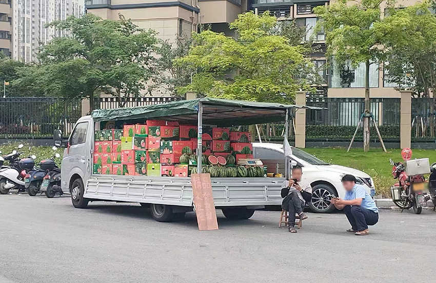 接报后,执法人员前往处置。现场看到,该处道路上,有六七辆车停在道路中间,将车门打开成“车载水果摊”。执法人员立即上前对其进行宣教制止,告诉他们附近有独秀苑市场、金银山市场等多个农贸市场,劝说他们到正规的经营场所经营。然而,此后执法人员巡查发现,一些商贩遇到城管队员前来纠正时,就把物品收回车上,等城管队员走了,车门一开,东西一摆,又立即开摊。