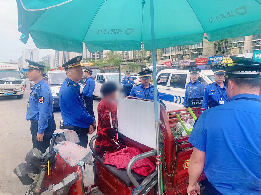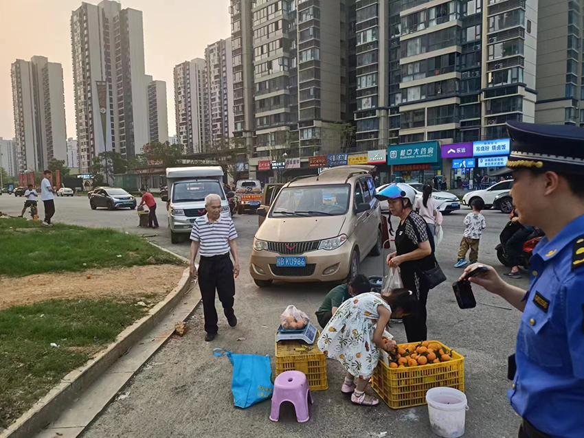 为还路于民,5月20日下午,三门江社区城管工作站的执法队员联合区“五车”整治办对这些劝不动的“车载水果摊”开展整治行动,暂扣一批经营工具,恢复了道路的畅通。