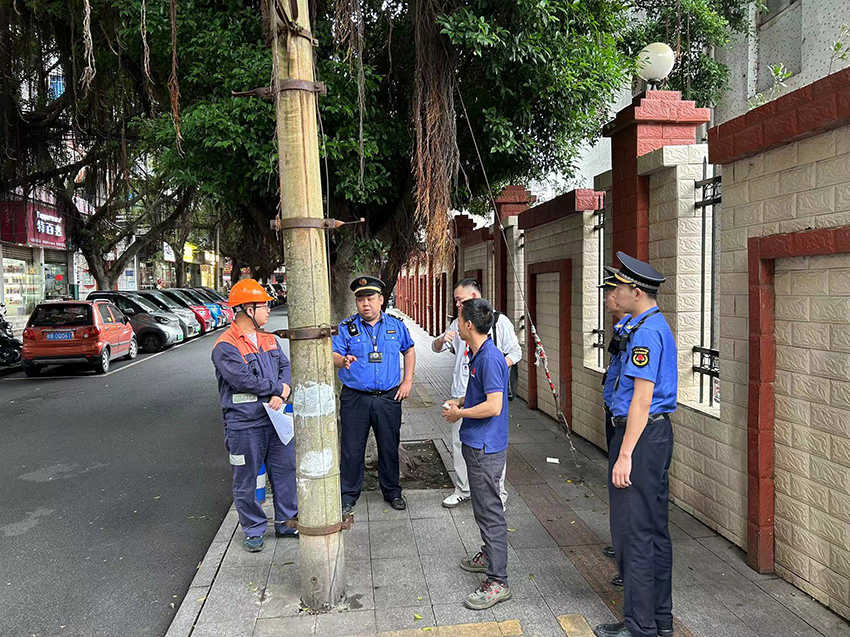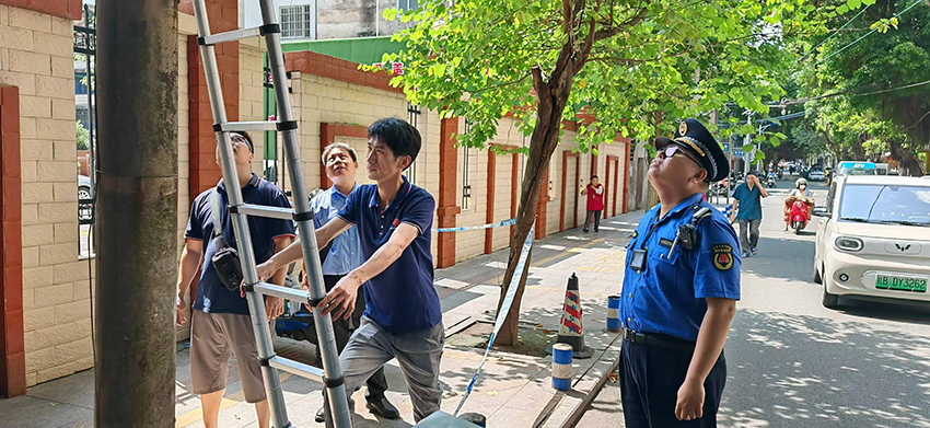 电杆铁索存隐患 城管协调多方及时解决