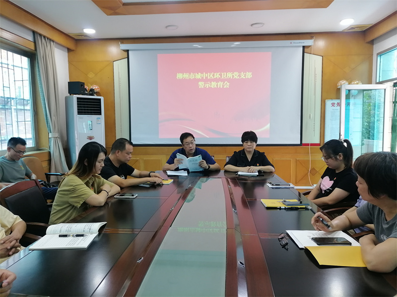 警示教育会分三个议程,第一项议程由城中区环卫所党支部书记周毅松同志组织学习《中央公开通报3起整治形式主义为基层减负典型案例》、《中央纪委国家监委公开通报3起违反中央八项规定精神典型问题》、《警钟长鸣树清风——柳州市城管环卫系统党员领导干部职工违纪违法典型案例汇编》及本单位违纪典型案例,强调各党员要以案为鉴、引以为戒,不断增强党性观念,强化纪律意识,要时刻紧绷遵纪守法这根弦,知敬畏、存戒惧、守底线。