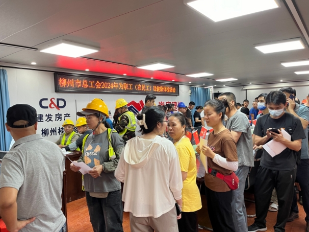 (城中区总工会讯 通讯员邹诗薇报道、刘星辰摄影)为保障一线职工(农民工)的身体健康,在全社会营造关心关爱农民工的浓厚氛围。由自治区总工会、柳州市总工会主办、城中区总工会协办;桂林工人疗养院承办的2024年为职工(农民工)送健康体检活动,于6月17日上午在城中区桂柳路以北B-3-8地块福建崇实建设有限公司施工项目工地举行。