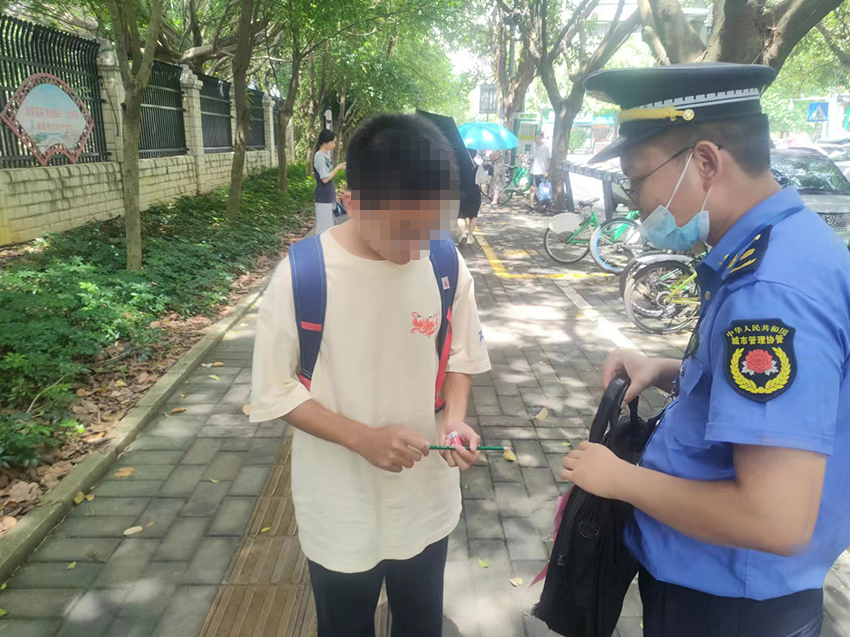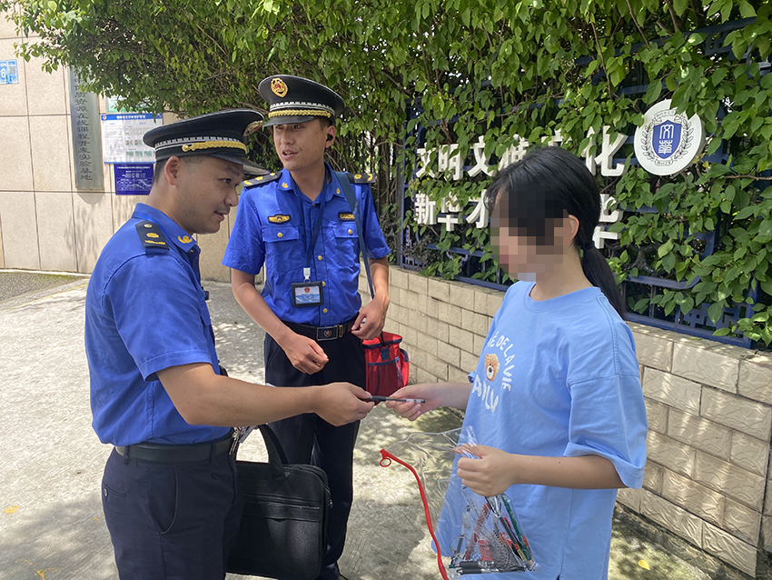 此外,执法人员根据中考时间安排,提前一周时间,对考点附近的市容进行清理整治,劝导校园周边商铺文明守法经营,全力做好市容管理。