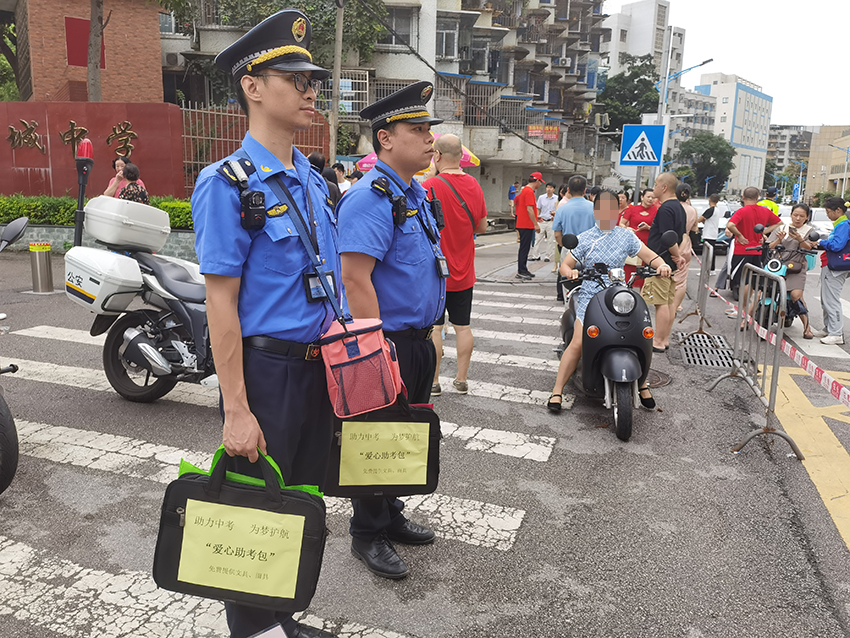 执法人员介绍,城中辖区共有6个考点,他们在每个考点都有人员值守,也都携带了“爱心助考包”,备考生不时之需。