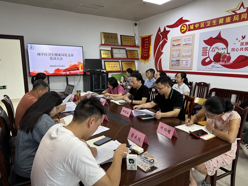 6月24日上午,城中区卫生健康局党支部在河东管理大厦614室召开党员大会,会议由党支部书记谭晓剑同志主持。