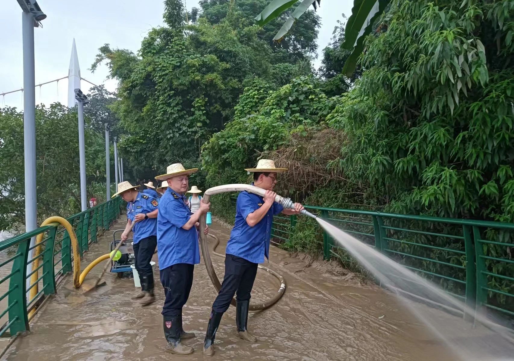 (城中区执法局讯 通讯员邓湖广报道)7月2日,柳江洪水再次淹没滨江东路、环江滨水大道等路段。今天早上6点,洪水退却,城中区综合执法局立即集结精干力量,开始了与洪魔的第3次较量。