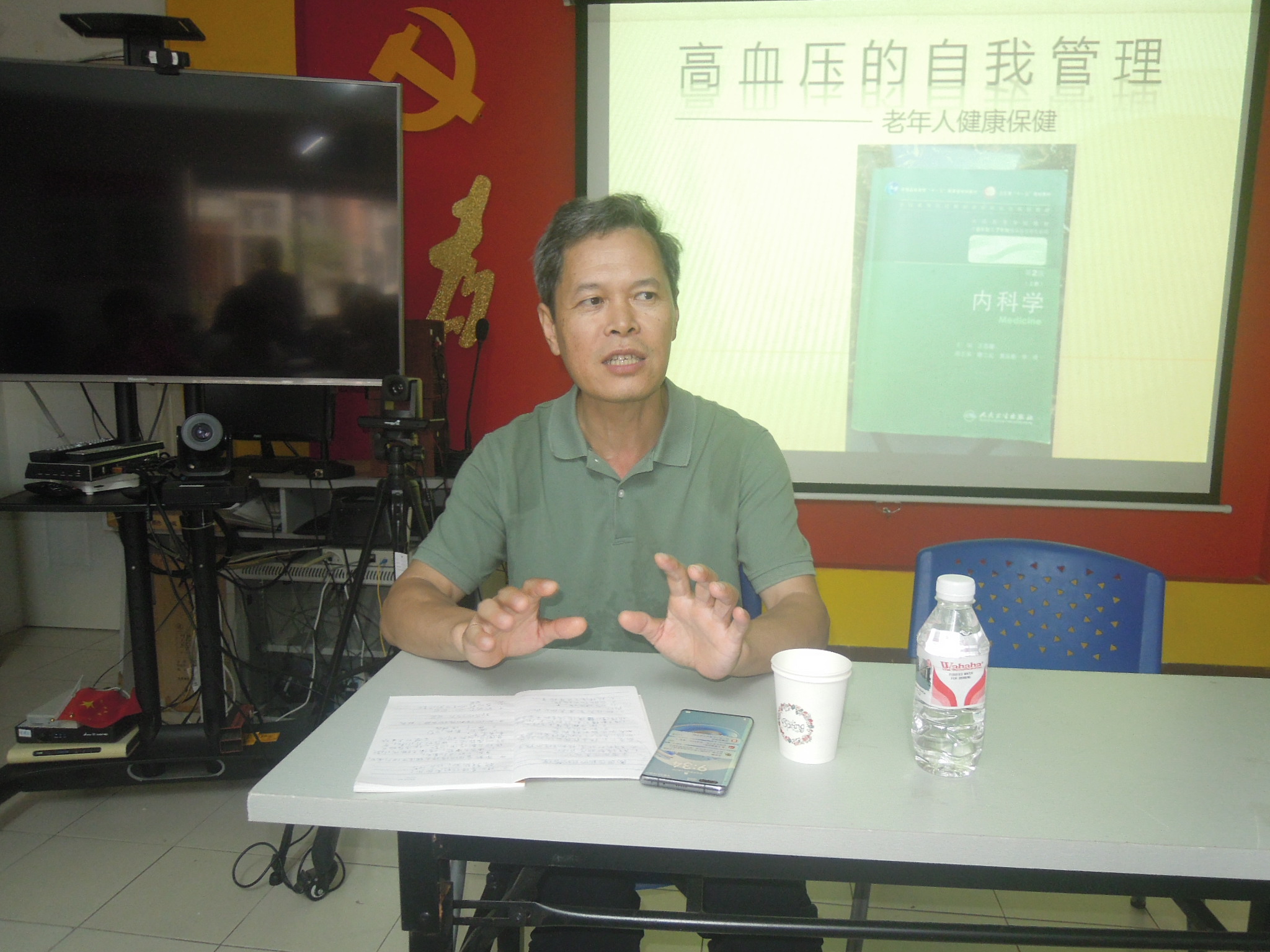 (区关工委办讯 通讯员程中)为提高居民对高血压疾病的认识水平,有效预防高血压并发症的发生。7月9日,城中区山水社区邀请区关工委副主任,区政法委原书记、主治医师王国辉,为辖区老年人开办高血压病防治知识讲座。