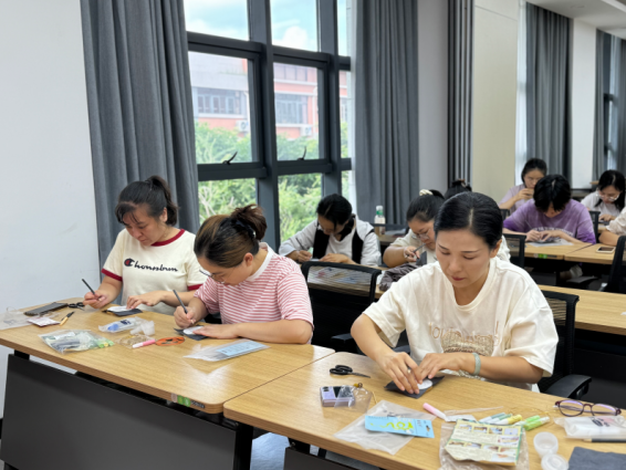 手工课内容为体验掐丝珐琅手工制作工艺,感受非遗手工制作之美。掐丝珐琅,俗称“景泰蓝”,是一门具有悠久历史的传统工艺。活动现场,女职工们在专业老师的示范和指导下,亲身体验掐丝珐琅作品的制作过程。大家耐心细致、一丝不苟地完成绘图、掐丝、点蓝、固定等步骤,最终打造出一个个精美且实用的掐丝珐琅镜作品。
