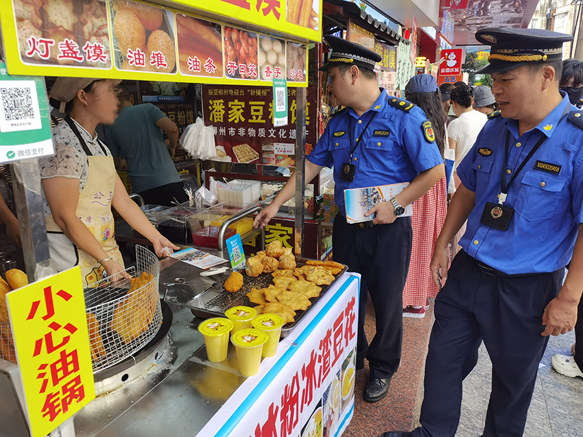 “‘门前三包’规定我熟的很,你们要是考试的话,我肯定得99分。”在一家小吃摊前,执法人员向摊主讲解“门前三包”相关的规定时,摊主笑着表示自己对相关规定“门清的很”也一直都自觉的严格遵守。“我们是做吃的生意,干净卫生的环境是必须的,客人看着也放心。”摊主说。