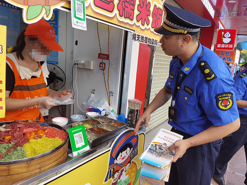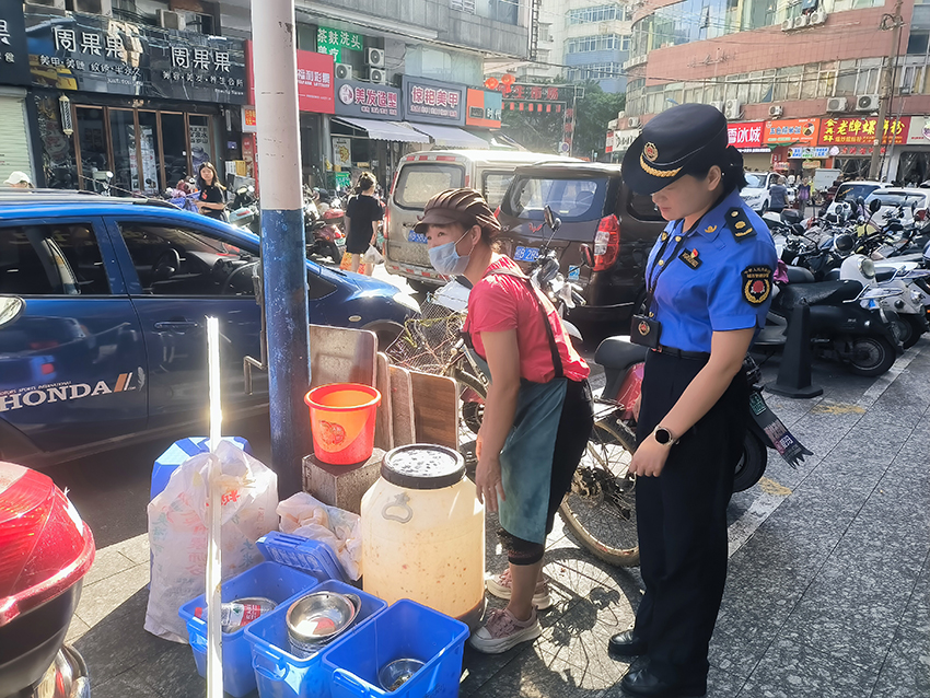 (城中区执法局讯 通讯员邓湖广报道)城中区青云路美食云集,商铺林立,是市民游客喜欢打卡的“网红街”。7月8日,城中区综合行政执法局在这条闻名遐迩的“网红街”开展“门前三包”宣传劝导,督促商家做好“门前三包”工作,保持街道环境更加干净整洁,让文明之风“吹旺”青云的“烟火气”。