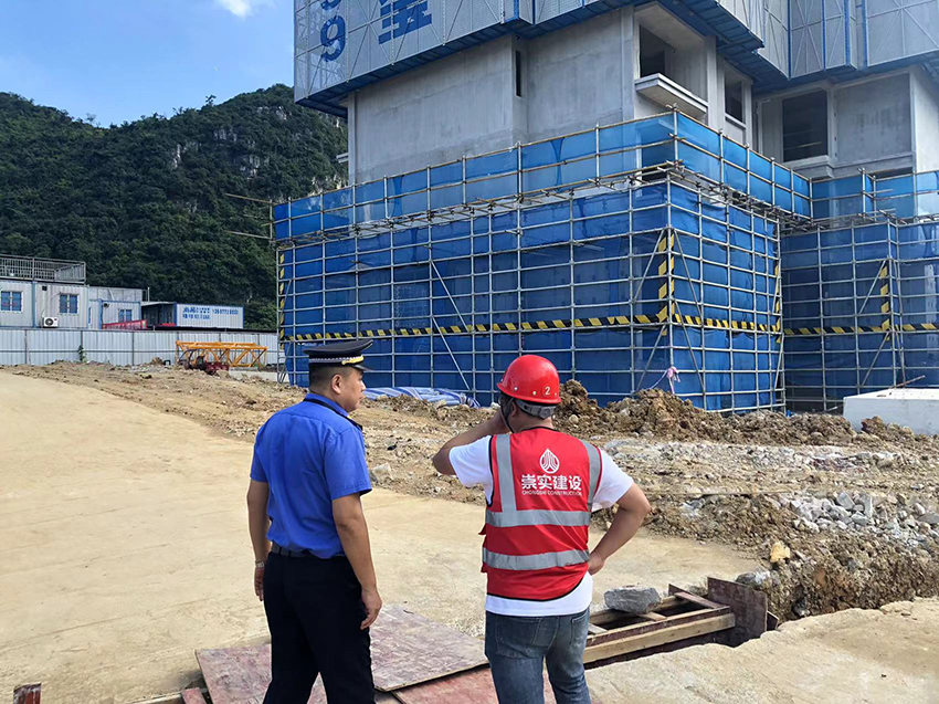 7月8日,执法人员来到独静路的某在建工地,向施工单位发放宣传资料,面对面进行宣讲,耐心讲解施工工地管理和大气污染防治方面相关法律法规,对日常施工作业以及建筑垃圾清运过程中如何规范有序作业达到防止扬尘效果提出切实可行的建议。