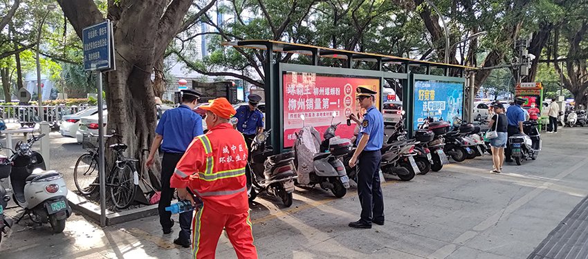 当日下午5点左右,有市民向柳州市智慧城管平台反映称,解放北路中医医院附近的公交车站台有许多电动车违停,严重影响市民的通行。