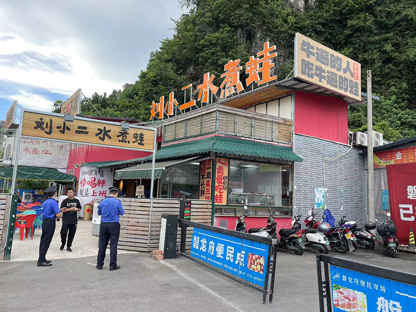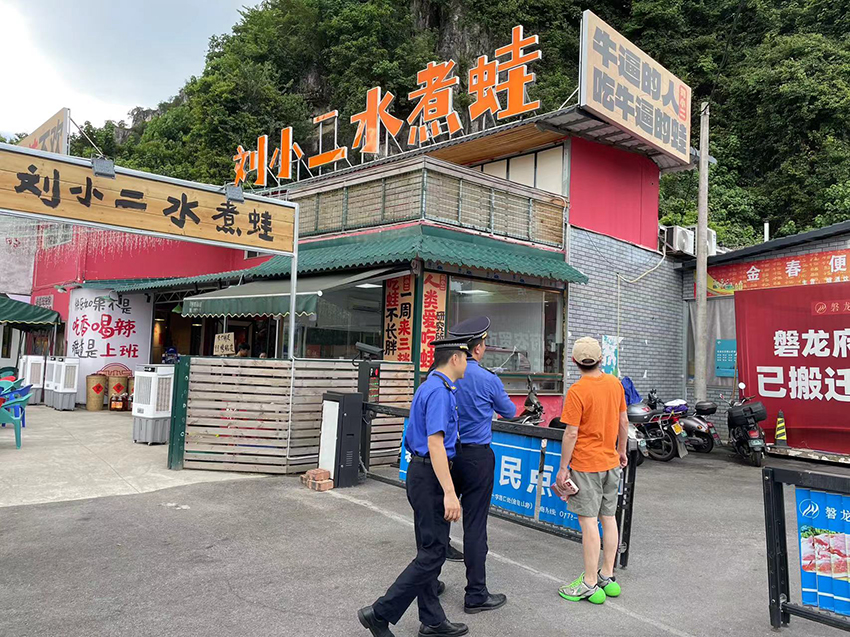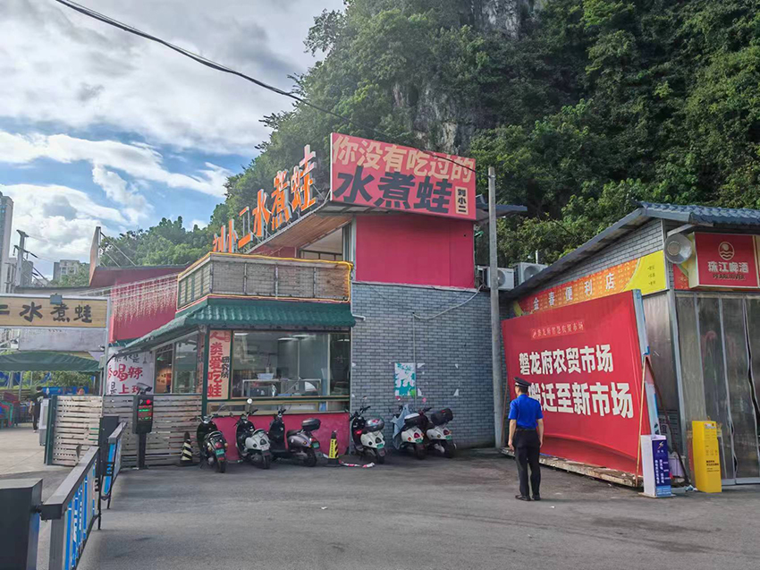 执法人员找到涉事店面了解情况,但店主不在,店员则表示对情况一无所知,执法人员当场下达了整改执法文书,要求店面进行整改。由于该餐饮店位于市场用地红纸范围内,随后,执法人员又找到市场管理方,说明情况后,市场管理方表示会督促涉事店面立即更换广告内容。