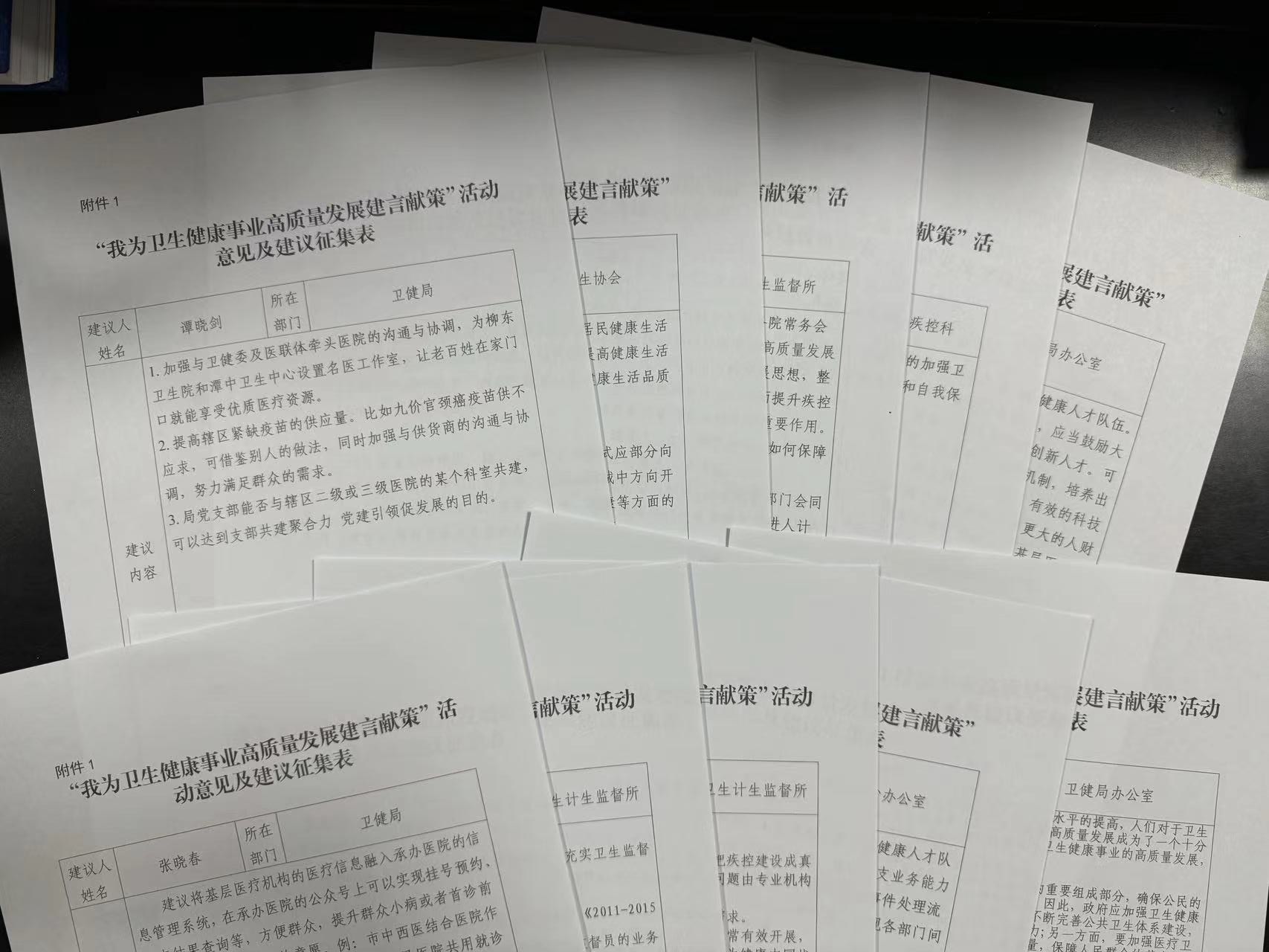活动以党员干部结合日常工作对我区卫健事业和清廉医院建设工作提出意见建议以及走访调研的形式开展,截至活动结束共收到《“我为卫生健康事业高质量发展建言献策”活动意见及建议征集表》50余份。通过沟通交流和活动反馈,查找短板弱项、谋划发展举措,了解群众关心关注的热点难点问题,提出改进工作的办法措施,真心帮助群众解决实际困难,进一步提升了系统内沟通的高效性、管理的科学性、服务的精准性。