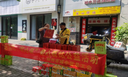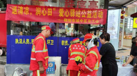 (城中区总工会讯 通讯员李贞君报道、蒋子涵摄影)在骄阳似火的炎炎夏日,有这样一群活跃在街头巷尾的人,他们不畏烈日炙烤,无惧高温热浪,始终坚守岗位,为城市的正常运转默默奉献着自己的力量。这些户外工作者们,以坚韧不拔的意志和无私奉献的精神,成为夏日里一道亮丽的风景线。为了给辛勤的劳动者们送来“娘家人”城中区总工会的亲切关怀,向他们致以诚挚的问候和衷心的感谢,8月29、30日在柳州市城中区总工会爱心驿站开展“送清凉,润心田”爱心驿站公益活动。