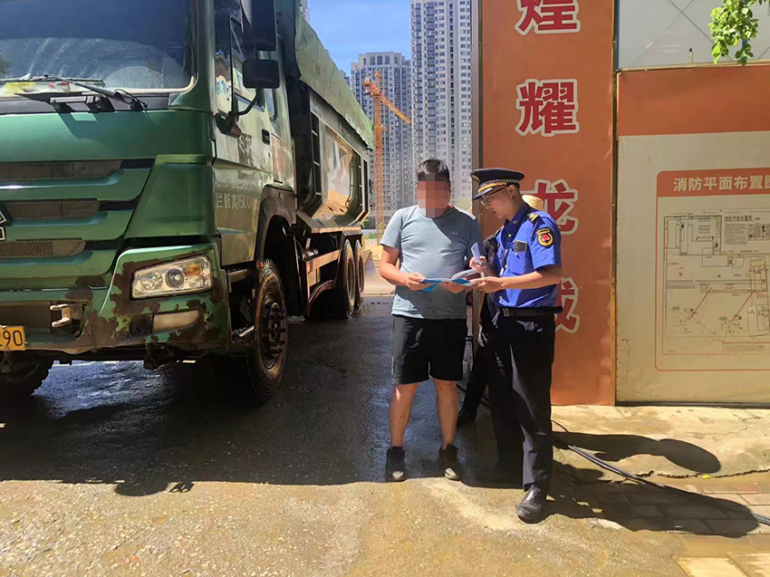 据悉,该工地刚刚开工,正在开挖土方。为从源头上减少车辆抛洒滴漏、带泥行驶污染道路等现象,执法人员送法上门,围绕建筑工地施工现场经常出现的扬尘噪声污染、工地出入口管理不规范、运输车辆车体不洁、沿途抛洒滴漏等突出问题,到工地开展法规宣传。