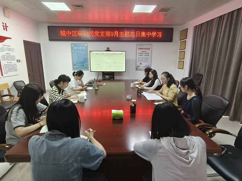 图为城中区审计局党支部开展9月主题党日集中学习