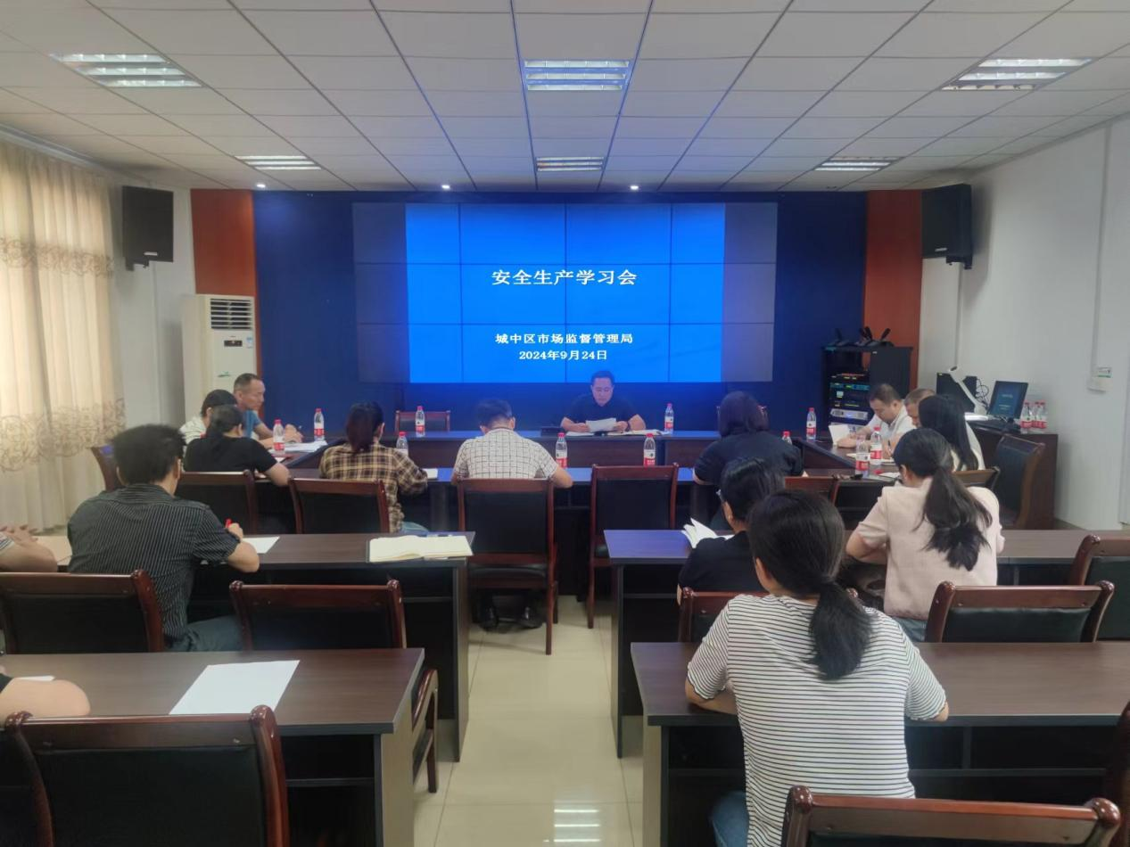 为深入学习贯彻习近平总书记关于安全生产的重要指示,深刻汲取江西新余佳乐苑临街店铺“1·24”特别重大火灾事故的惨痛教训,进一步抓好安全生产工作,切实增强安全防范意识和底线思维。9月24日上午,城中区市场监督管理局召开安全生产专题学习会议,会议由城中区市场监督管理局党组书记、局长郑杰主持,城中区市场监督管理局班子成员、各股室负责人,各街道市场监督管理所所长等20余人参会。