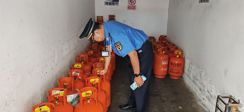 当天上午9点,联合执法人员的检查行动从雅儒路的燃气经营点开始。执法人员对该燃气经营点的台账、气源、存储数量等事项逐一进行了检查,并查看配备的灭火器材是否合格处于有效期等等,确保安全排查不留死角。
