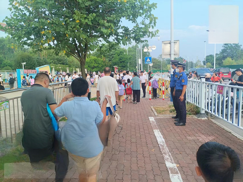 当天上午7时30分,在土伏北路的景行小学河东校区门口,两名执法人员在此执勤,上学的学生们正在安全有序的进入学校,接送学生的车辆也是即停即走,现场秩序一片井然。而辖区内各中小学校园附近,也上演着同样的一幕。