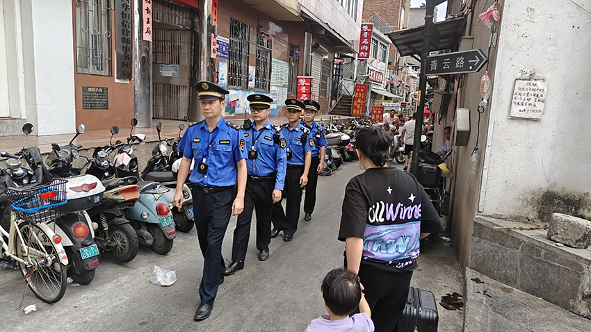 “你好!门口这些东西请收入店里。”“广告牌不能放到人行道上影响通行……”河北半岛地处城市中心,区域内有东门古城楼、青云美食街、西来古寺、音乐喷泉等多个“顶流”网红景点,国庆假期里,前来打卡拍照的市民游客络绎不绝。城中区综合行政执法局负责该处路段的执法队员每天提前上岗,采取固定守点和流动巡查的方式开展督查,对占道摆卖的流动摊贩进行劝离、对跨槛经营的商家进行纠正以及开展燃气安全生产检查和“门前三包”宣传工作,确保国庆期间街道依旧整洁有序,为游客市民提供更好的市容保障。