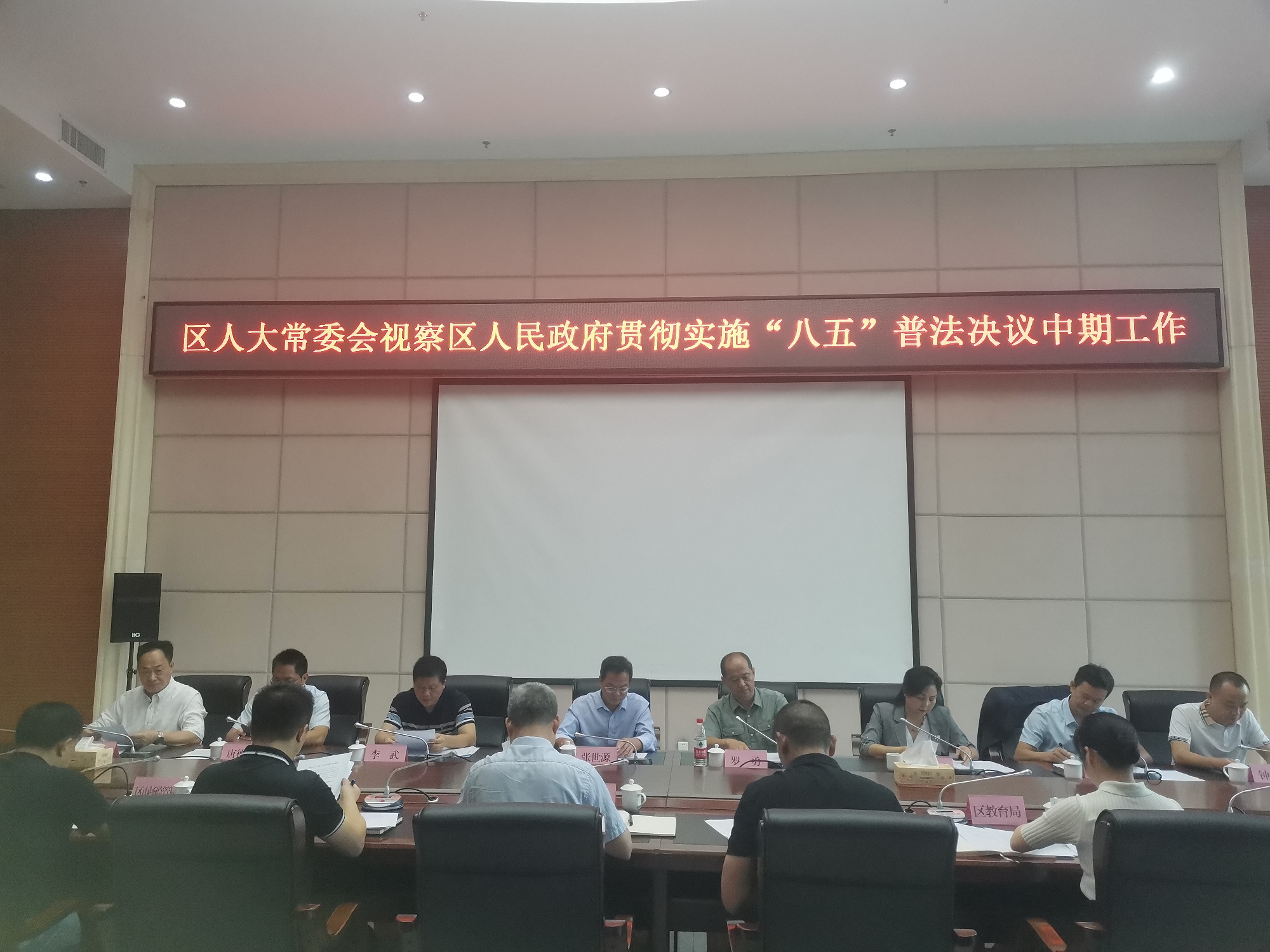 实地察看结束后,随后召开了视察“八五”普法决议中期工作座谈会,会上区行政执法局、市场监管局、教育局首先进行了交流汇报发言,接着区政府领导作了城中区“八五”普法中期工作情况报告,视察组听取了区政府和相关部门的情况汇报后,对当前普法工作存在的主要问题和困难进行总结分析,并对城中区如何加强和改进下一步普法工作展开深入交流,提出了意见、建议。