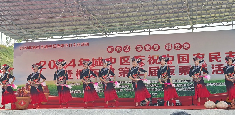 本次丰收节活动主题为“学用‘千万工程’礼赞丰收中国”。 内容丰富多彩,除了有文艺表演、板栗及农产品展销、拾捡板栗、游园活动、长桌宴等传统活动环节外,还设置了“听党话、感党恩、跟党走”宣讲、学用“千万工程”经验推进和美乡村建设主题展、乡村振兴建设成果展示等内容,让各地市民充分领略城中区的美食、美景、美居的同时,还通过宣讲、展板等形式讲好乡村振兴故事。整个活动人山人海,游客一边欣赏当地的田园风景,一边兴高采烈地购买板栗农产品及参加趣味游园活动,与当地村民共同庆祝“中国农民丰收节”、共享城中区乡村振兴成果。本次活动共销售板栗、腐竹等农产品约0.216万斤,接待游客1000余人,农旅收入约11.05万元,有效促进了城中区农旅融合发展。柳东村已举办两届板栗节活动,目前柳东村板栗种植面积300余亩,年产量约1万斤,板栗已成为柳东村的传统产业。通过举办板栗节活动,有力宣传城中区特色农产品,带动柳东村及环江滨水大道休闲、观光农业发展,助力农民增收,乡村振兴。