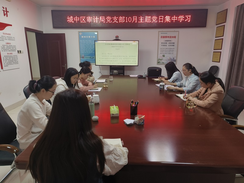 图为城中区审计局党支部开展10月主题党日集中学习