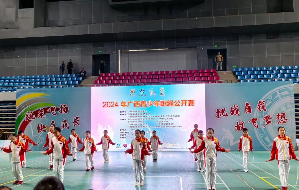 2024年广西青少年跳绳公开赛于10月26日在柳州市李宁体育馆拉开帷幕,大赛吸引了全区各地100支跳绳代表队汇聚龙城,共计1272名运动员参加了比赛。