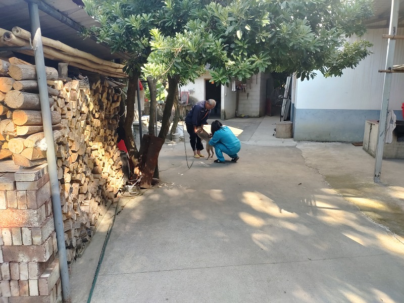 城中区农业农村局工作人员、城中区狂犬病定点免疫点宠物医生和村队长、村防员深入各村,挨家挨户为村民饲养的犬只免费注射国产狂犬疫苗,“应免尽免”的同时将犬用狂犬疫苗免疫服务送到村民“家门口”,引导村民“文明养犬、科学防疫”,着力提升农村犬只狂犬病疫苗免疫率,筑牢农村狂犬病免疫屏障。